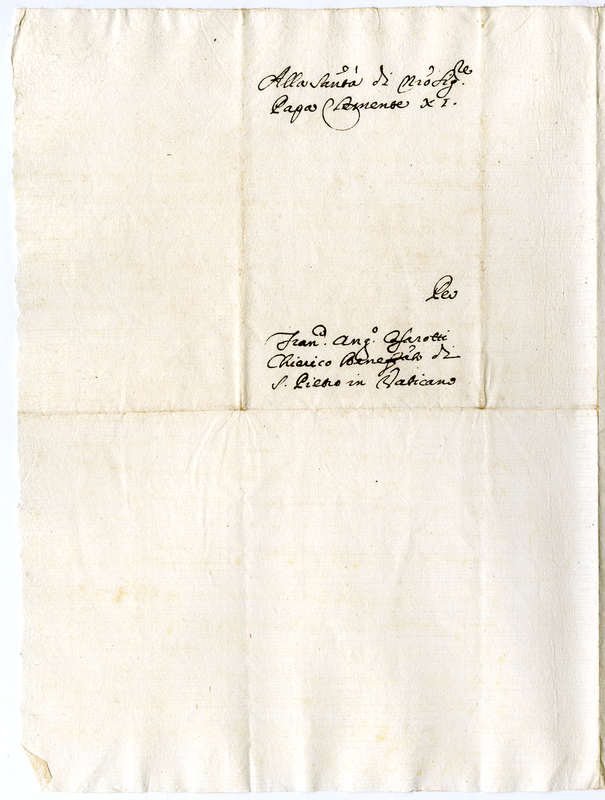 Lettera di Francesco Angelo Casarotti a Clemente XI (1700-1721)