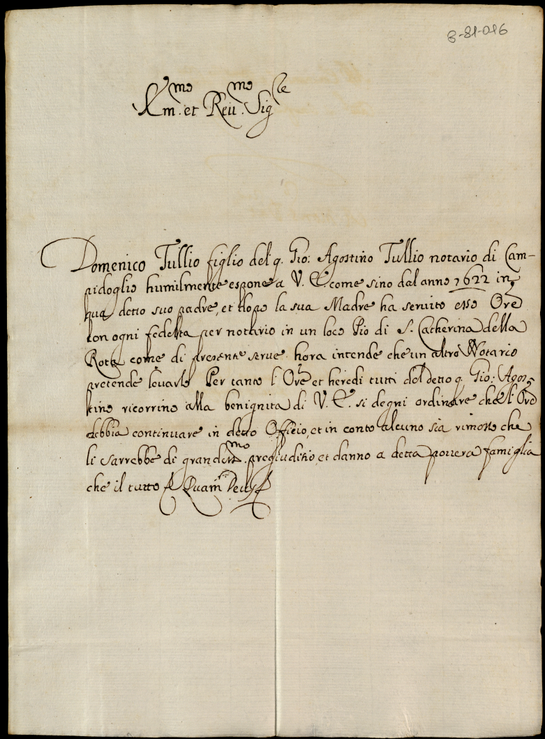Memoriali diversi diretti al signor cardinale S. Onofrio