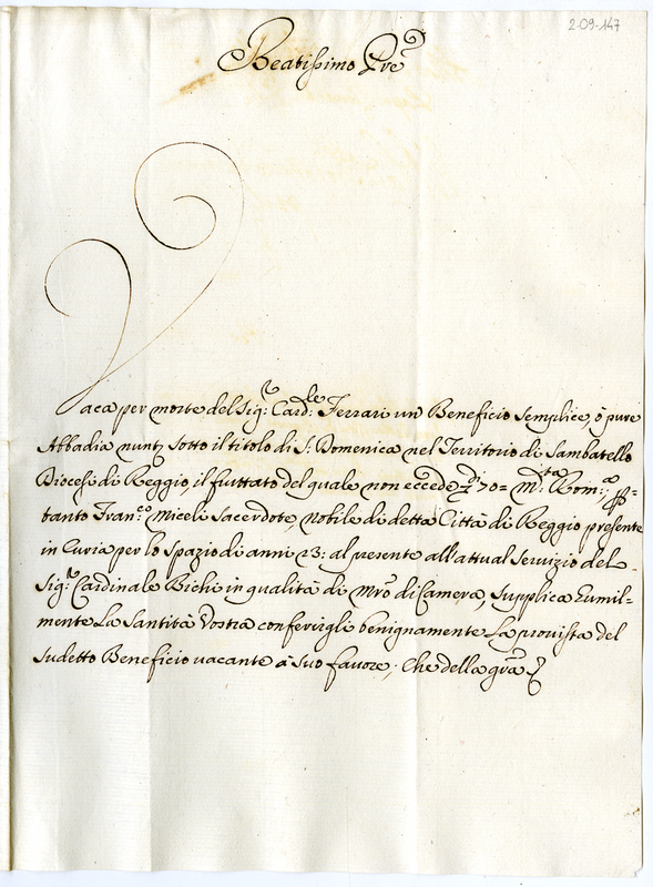 Chiede al pontefice il beneficio vacante per morte del cardinale Ferrari