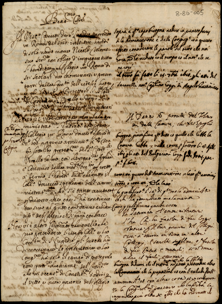 Scritture appartenenti al Collegio Caruti, del quale era protettore il cardinale Sant'Onofrio