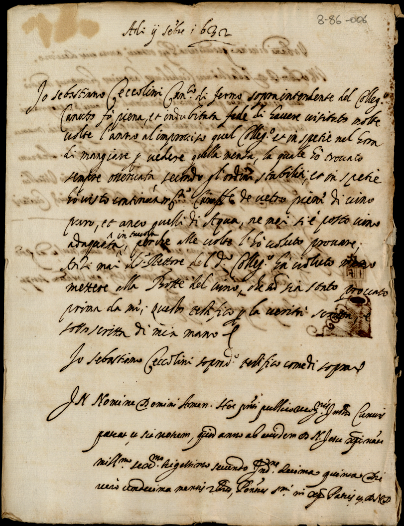Scritture appartenenti al Collegio Caruti, del quale era protettore il cardinale Sant'Onofrio