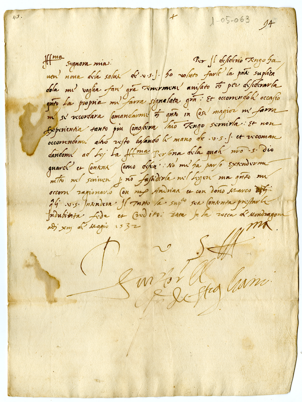 Lettera della principessa di Stigliano a Ursina Della Rovere (1532 maggio 13)