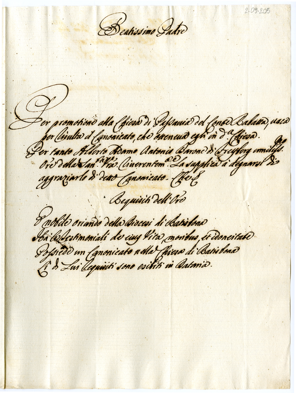 Lettera di Alberto Adamo Antonio barone di Freisberg a Clemente XI (1700-1721)