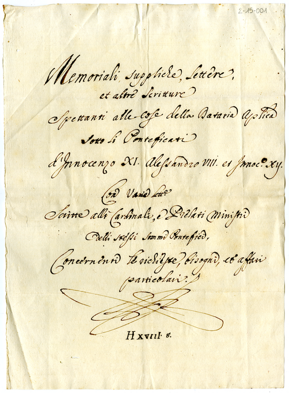 Memoriali, Suppliche, Lettere, et altre scritture spettanti alle cose della Dataria Apostolica sotto li Pontificati di Innocenzo XI Alessandro VIII et Innocenzo XI. Con varie lettere scritte alli Cardinali, e Prelati Ministri delli stessi Sommi Pontefici, concernenti le richieste., li bisogni , et affari particolari (1676-1700)