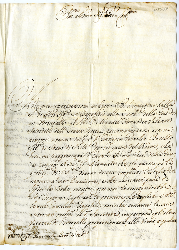 Supplica il cardinale a favore di don Manuel Fernandaz Valente raccomandato dal segretario di Stato di sua maestà per la parte del nord