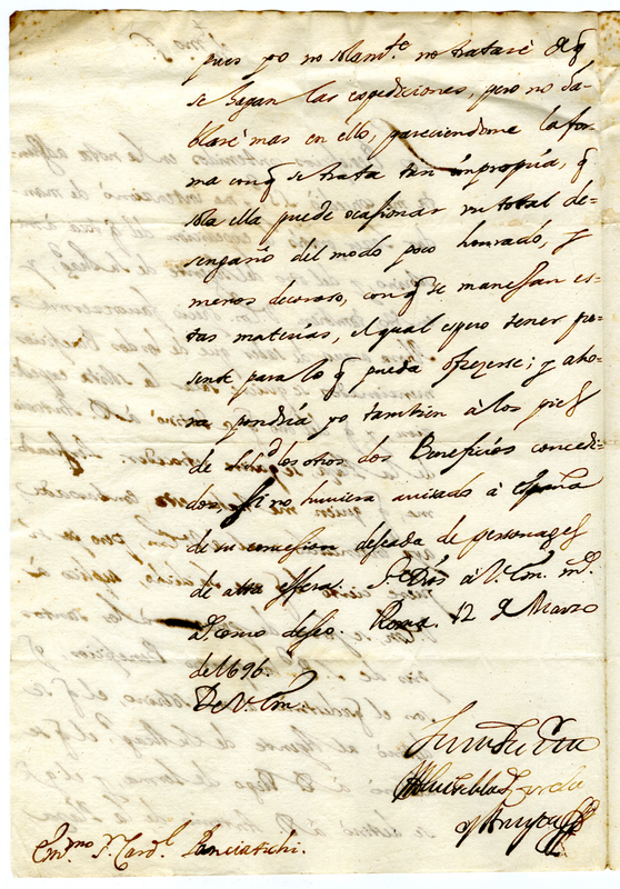Lettera al cardinale Panciatici (1696 marzo 12)