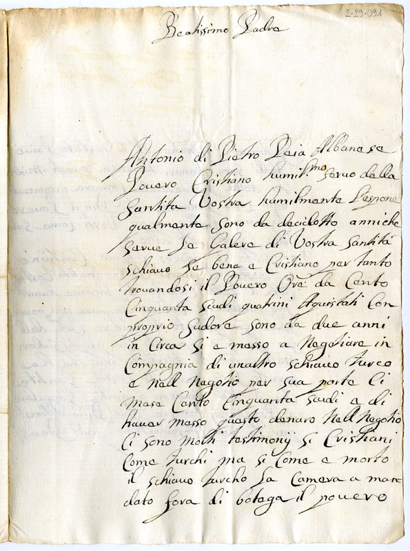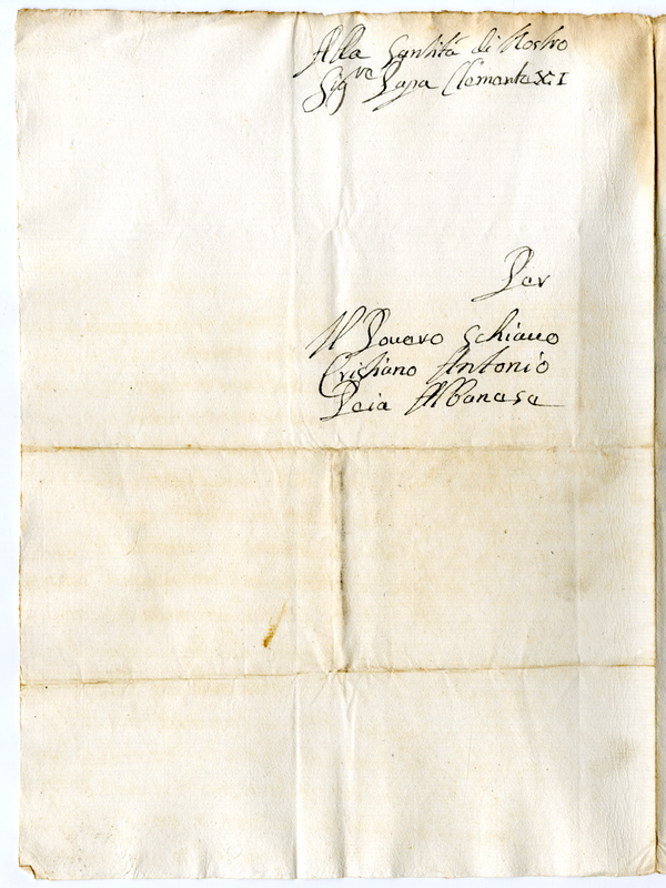 Lettera di Antonio Daia a Clemente XI (1700-1721)