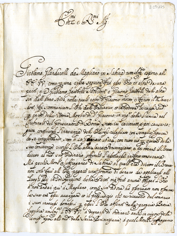 Lettera di Girolamo Glandarelli alla sacra congregazione dei vescovi e regolari (1685-1690)