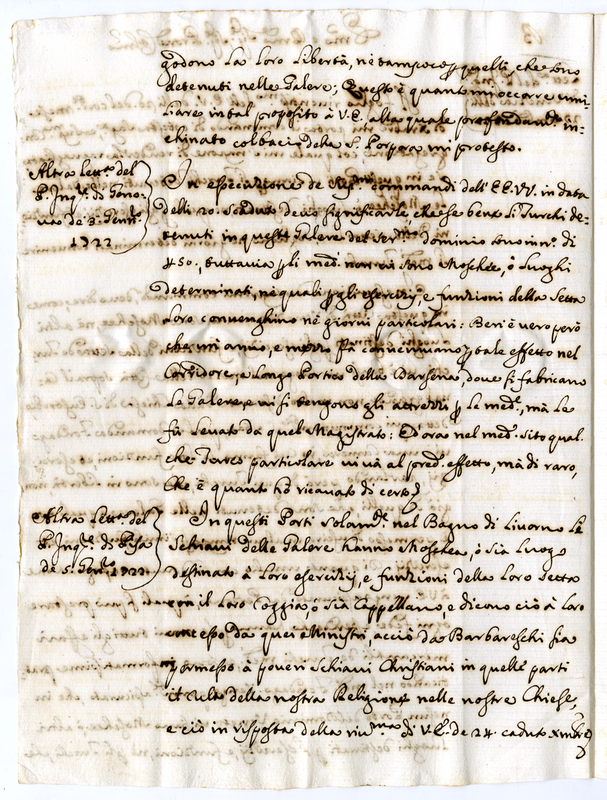 B) Lettera dei padri inquisitori di Venezia, Genova e Pisa (1721)