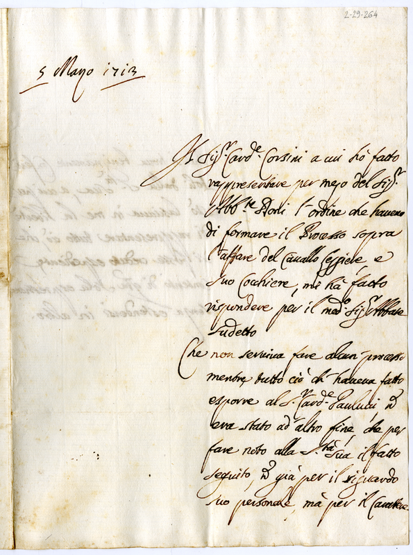 Sul processo del cavallo leggero e suo cocchiere (1713 marzo 5)