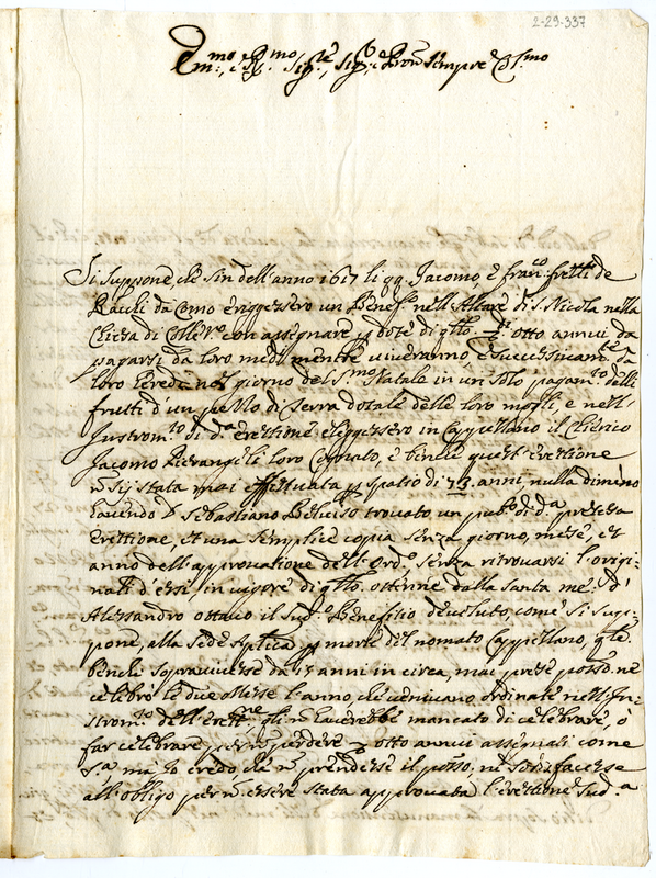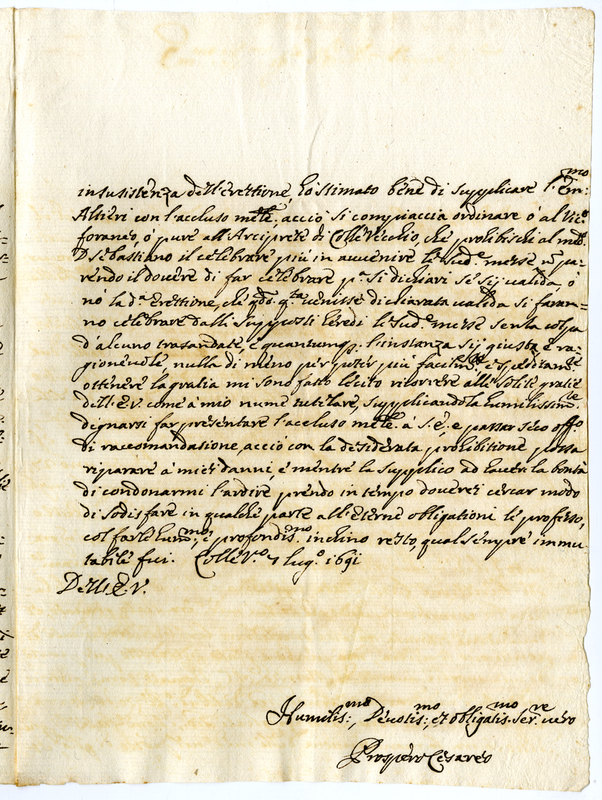 Lettera di Prospero ministro cesareo ad un cardinale (1691 luglio 7)