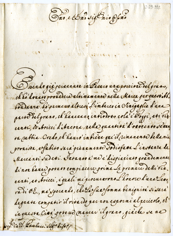 Lettera del cardinale Tanara al cardinale Paolucci (1713 giugno 23)