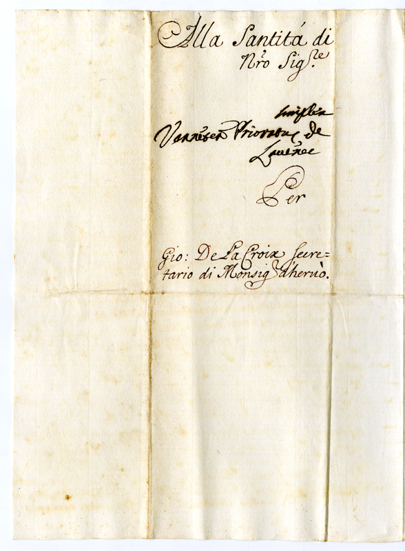 Lettera di Giovanni De La Croix a papa Clemente XI (1700-1721)
