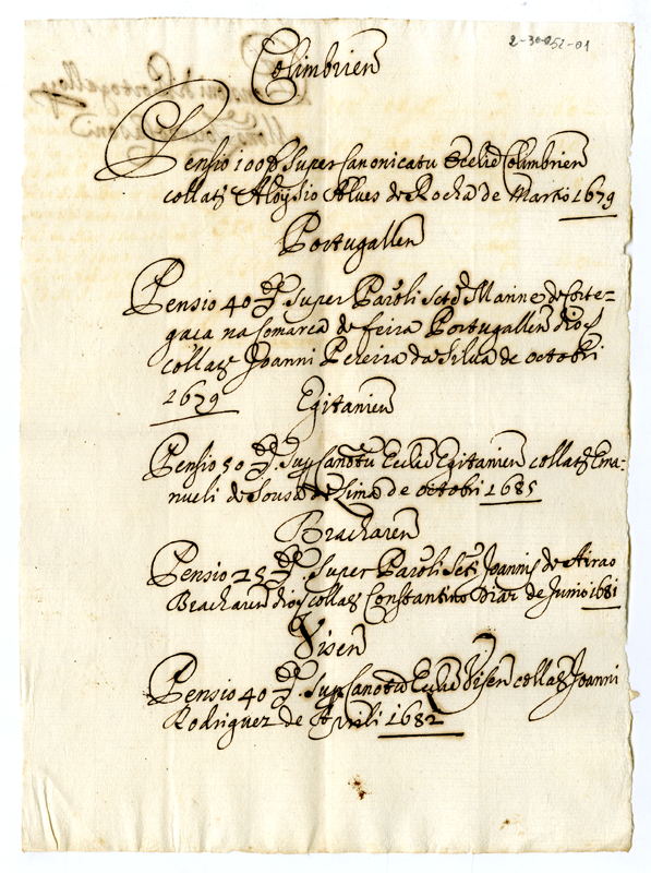 Pensioni di Portogallo per Monsignor Casoni (1679-1682)