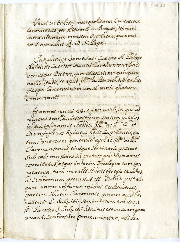 Richiesta di un canonicato da parte di Maria Filippo Chalmette (1700-1721)
