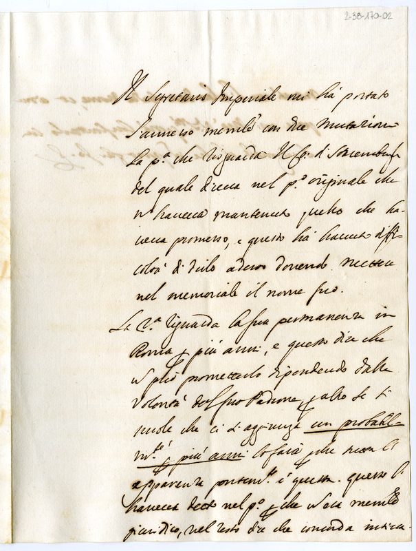 Comunica di aver ricevuto un memoriale dal segretario imperiale che riguarda il conte di Starembergh