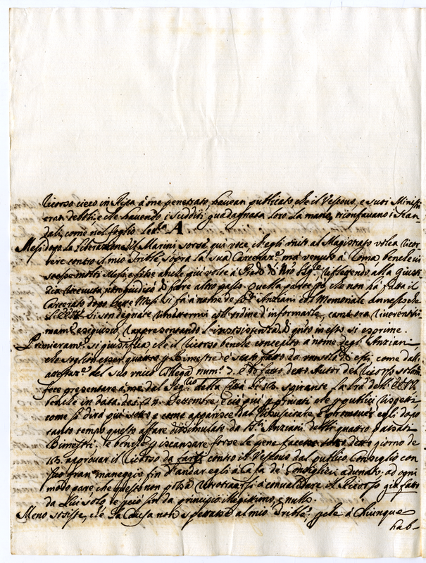 Sulla condotta immorale del notaio Vincenzo Marini (1706 ottobre 30)