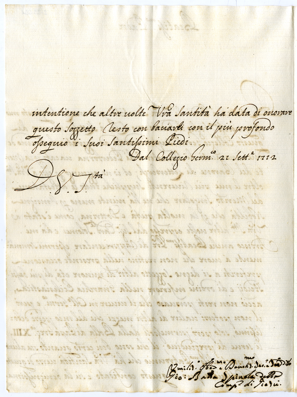 Lettera di Giovanni Battista Spinola a papa Clemente XI (1712 settembre 21)