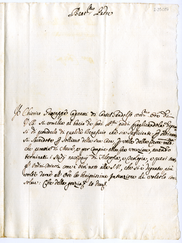 Lettera di Giuseppe Cagnetti a papa Clemente XI (1700-1721)