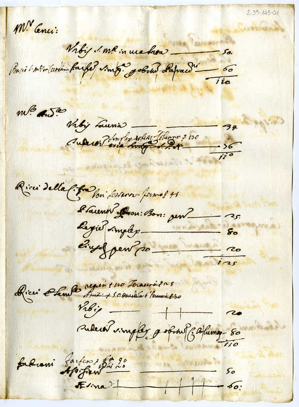 Elenco di persone titolari di benefici e rispettive rendite (1690-1696)