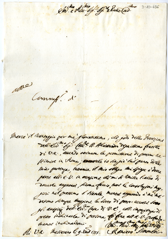 Lettera di Raniero Simonetti al cardinale Annibale Albani (1715 dicembre 9)