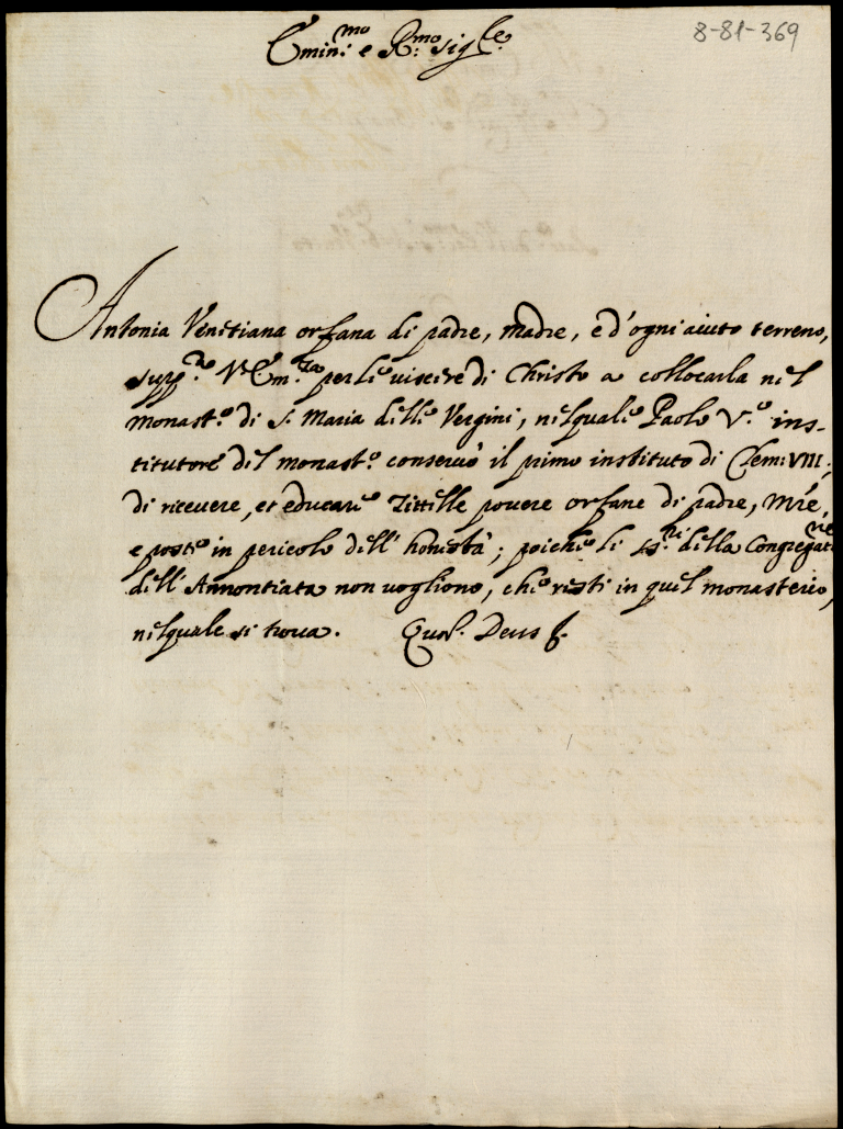 Memoriali diversi diretti al signor cardinale S. Onofrio