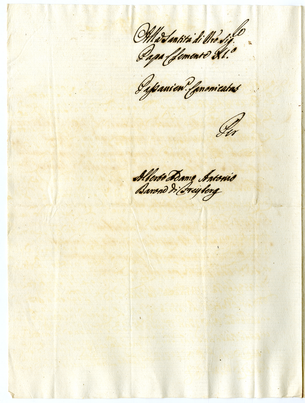Lettera di Alberto Adamo Antonio barone di Freisberg a Clemente XI (1700-1721)
