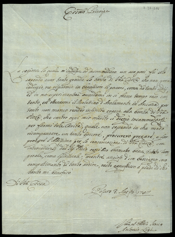 Lettere ricevute in Urbino dal Signor Principe Orazio Albani ultimo di questo nome nell'anno 1747