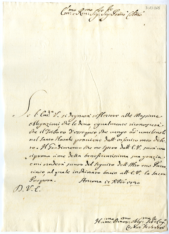 Lettera di Cesare Ferrari al cardinale Annibale Albani (1730 dicembre 17)