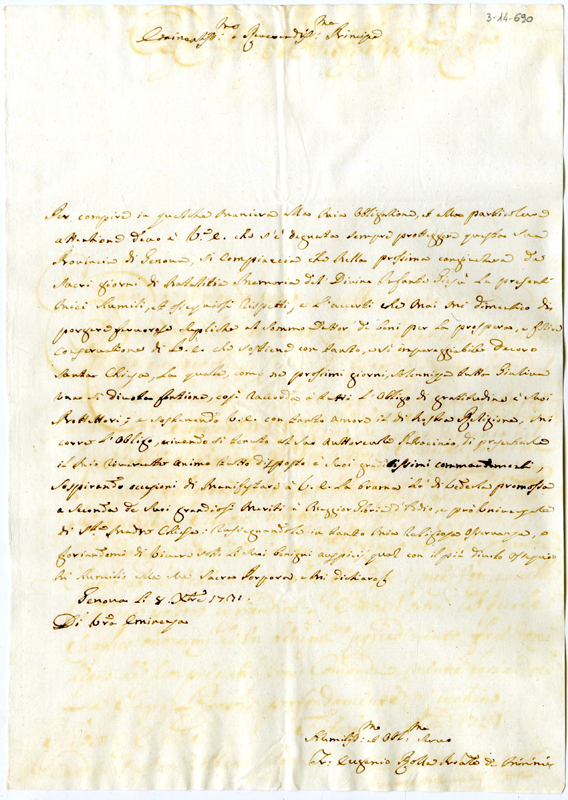 Lettera di fra Eugenio Rolla al cardinale Annibale Albani (1731 dicembre 8)