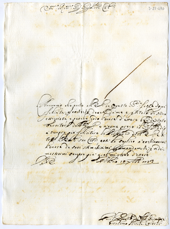 Lettera di Girolamo Nicola Corboli al cardinale Annibale Albani (1723 dicembre 10)