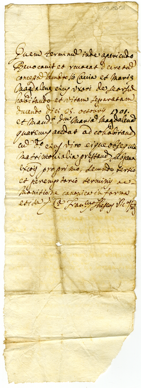Francesco Tesei vicario generale invita Maria Maddalena a coabitare con il marito (1700-1705)