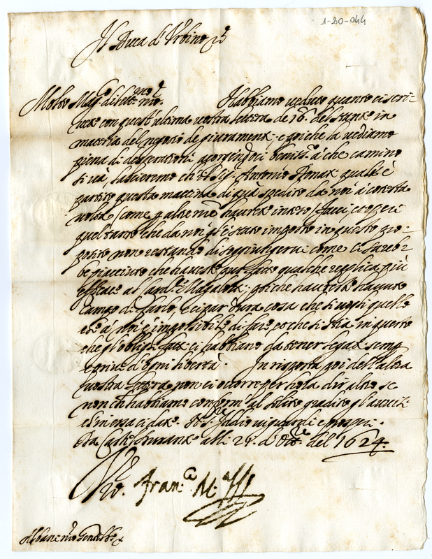 Lettera di Francesco Maria duca di Urbino a Orazio Albani (1624 ottobre 21)
