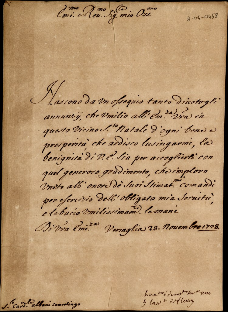 3. Lettere di diversi all'eccellentissimo signor cardinale S. Clemente dell'anno 1723, 1727 e 1728