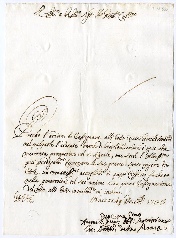 Lettera di Giovanni Battista della Penna al cardinale Annibale Albani (1723 dicembre 19)