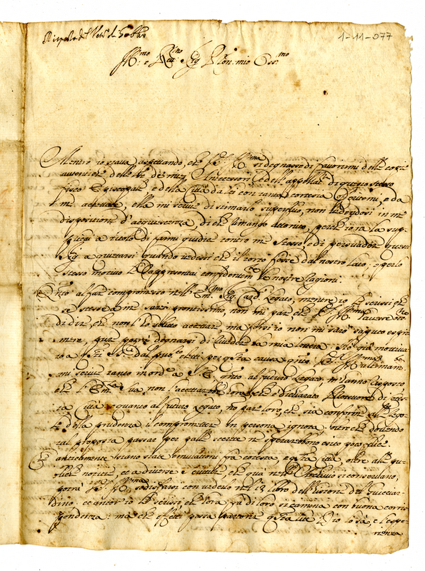 Lettera del vescovo di Gubbio all'arcivescovo di Urbino (1662 gennaio 8)