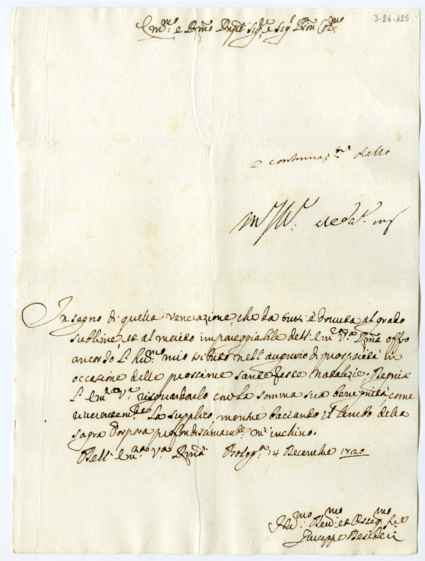 Lettera di Giuseppe Desideri al cardinale Annibale Albani (1720 dicembre 14)