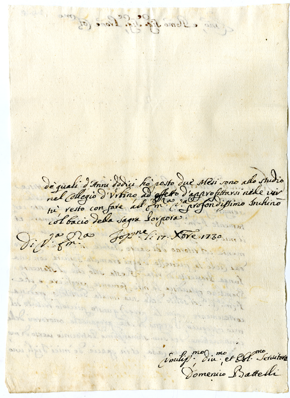 Lettera di Domenico Battelli al cardinale Annibale Albani (1730 dicembre 17)