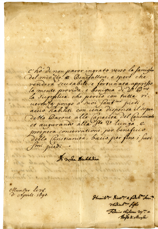 Lettera del Vescovo di Munster a papa Alessandro VIII (1690 aprile 28)