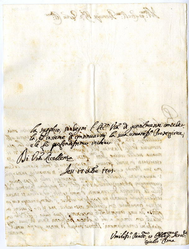 Lettera di Giulio Cima ad Annibale Albani (1705 dicembre 17)
