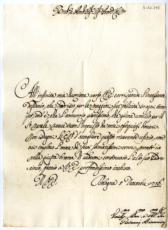 Lettera di Giovanni Rinuccini al cardinale Annibale Albani (1716 dicembre 5)