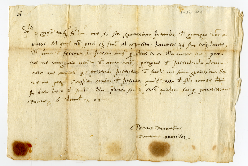 Biglietto di Pietro Marcello a Filippo Albanese (1504 dicembre 6)