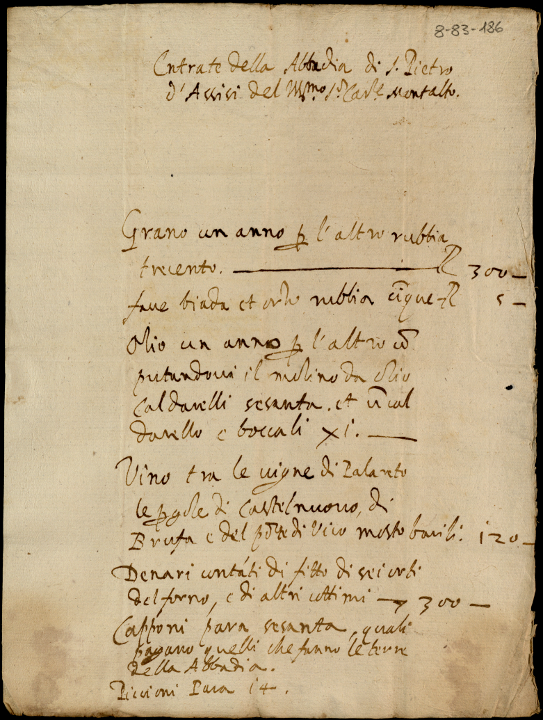 Scritture concernenti gl'interessi dell'Abbazia di San Pietro d'Assisi