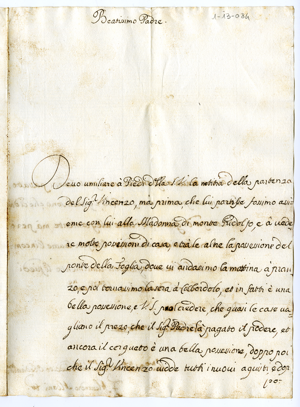 Lettera di carattere familiare. Notizie sull'acquisto di alcuni poderi di casa Albani
