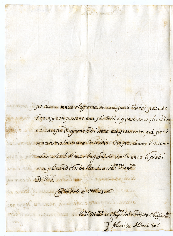 Lettera di Alessandro Albani a papa Clemente XI (1706 ottobre 8)