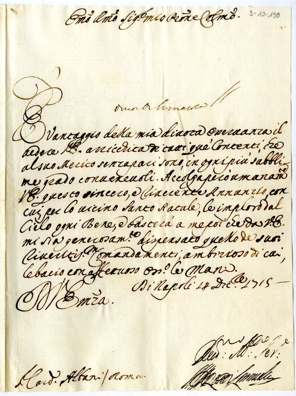 Lettera al cardinale Annibale Albani (1715 dicembre 14)