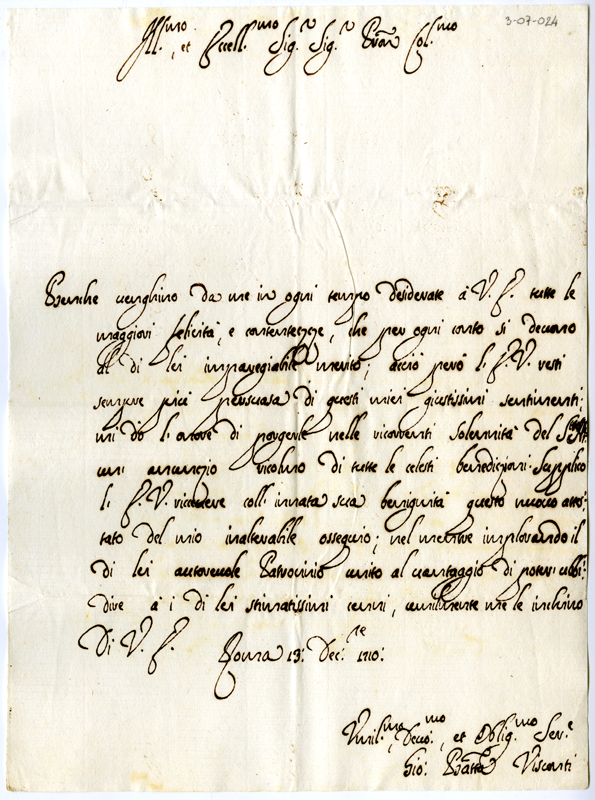 Lettera di Giovanni Battista Visconti ad Annibale Albani (1710 dicembre 13)
