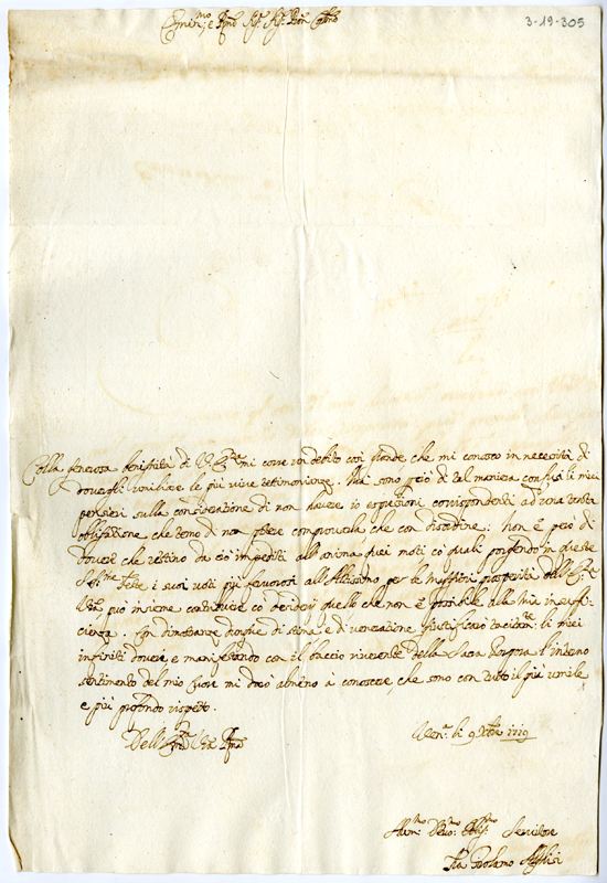 Lettera di fra Girolamo Alghisi ad Annibale Albani (1719 dicembre 9)