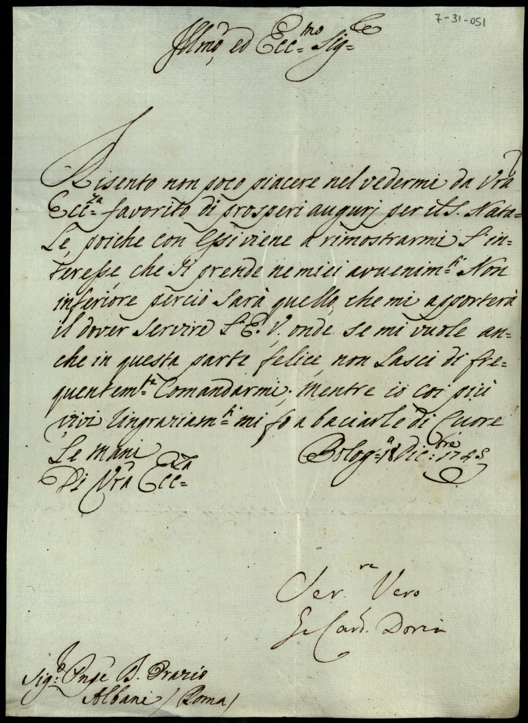 Lettere ricevute in Urbino dal signor Principe Don Orazio Albani ultimo di questo nome nell'anno 1745