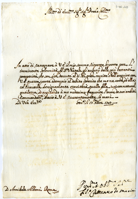Lettera di Filippo Cattaneo da Marini ad Annibale Albani (1707 dicembre 17)